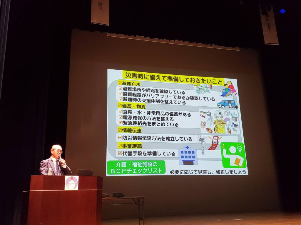 業務中でしたので、全部のセミナーに参加することはできませんでしたが、瀬戸内町 総務企画課危機管理係 防災専門監の土井 一馬様の「奄美地域における介護・福祉施設のBCPへの反映」のご講演を拝聴致しました。奄美地域の地理的・災害特性を踏まえながら、マニュアルの作成、定期的な訓練や研修・シミュレーション訓練なども積極的に実施しながら、継続的なマニュアルの見直しを行い常にアップデートしていく必要を感じました。