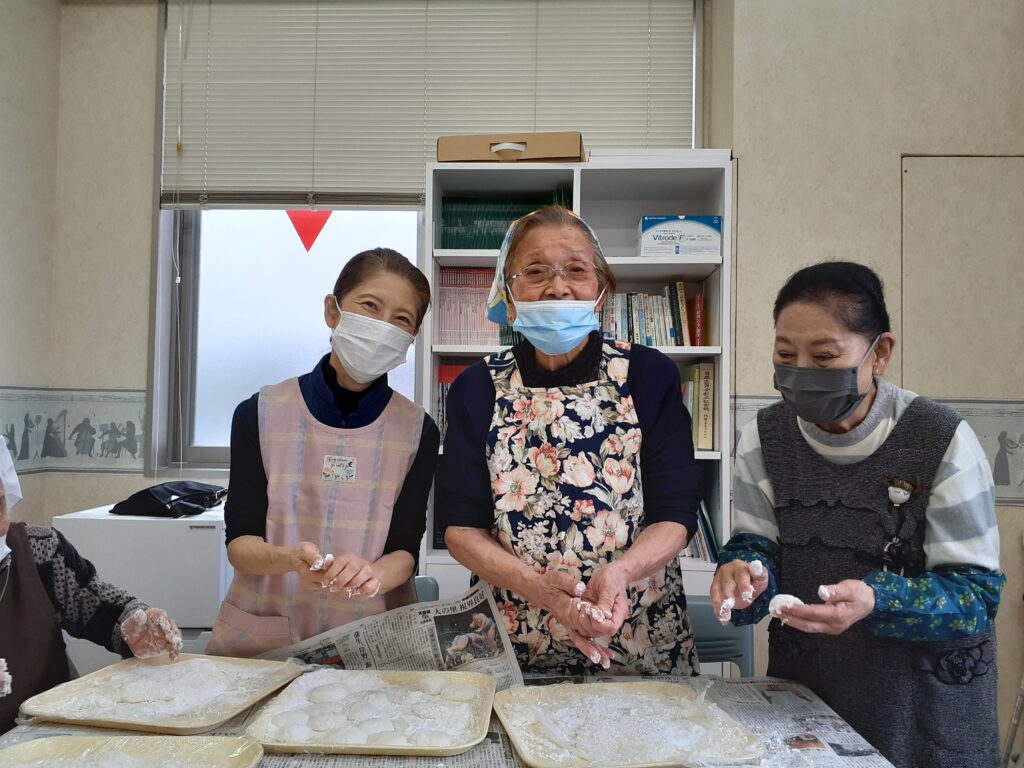 当事業所は、本日をもちまして、今年の営業は終了となり、12/30~1/4まで年末年始のお休みになります。年末の慌ただしい中、また、雨が降ったり、気温が急に下がったりした中、「もちつき大会」に参加して頂いたみなさま、大変ありがとうございました。毎年、お餅の柔らかさが安定せず、利用者さまからアドバイスをもらったり、昔話を聞かせて頂いたり、楽しいイベントとなっています。おいしいお餅も食べたし、また、来年も利用者さまたちとにぎやかな1年になりますよう、職員一同、頑張っていきたいと思います。1年間、ありがとうございました。