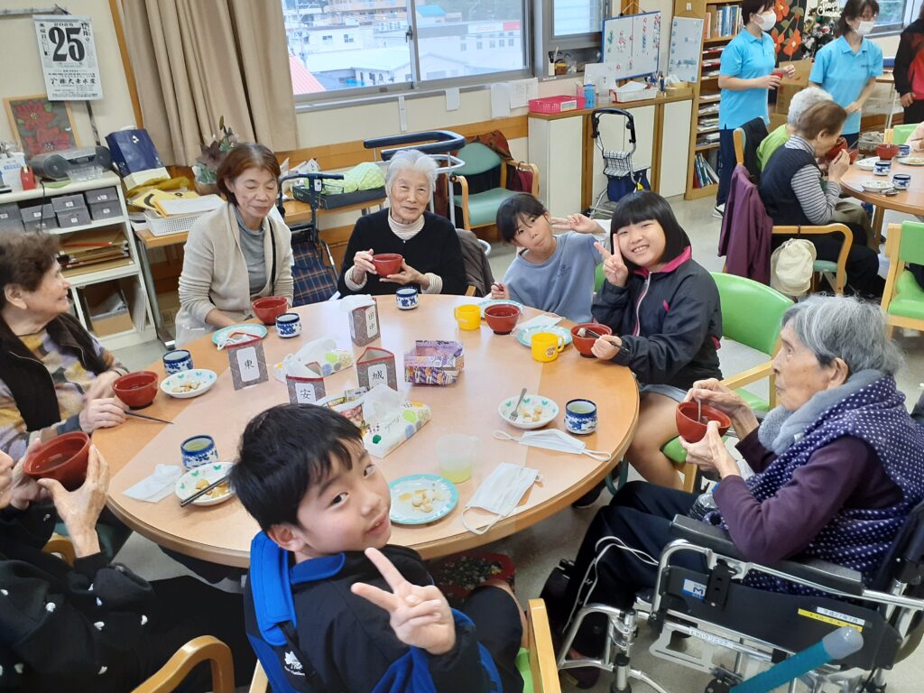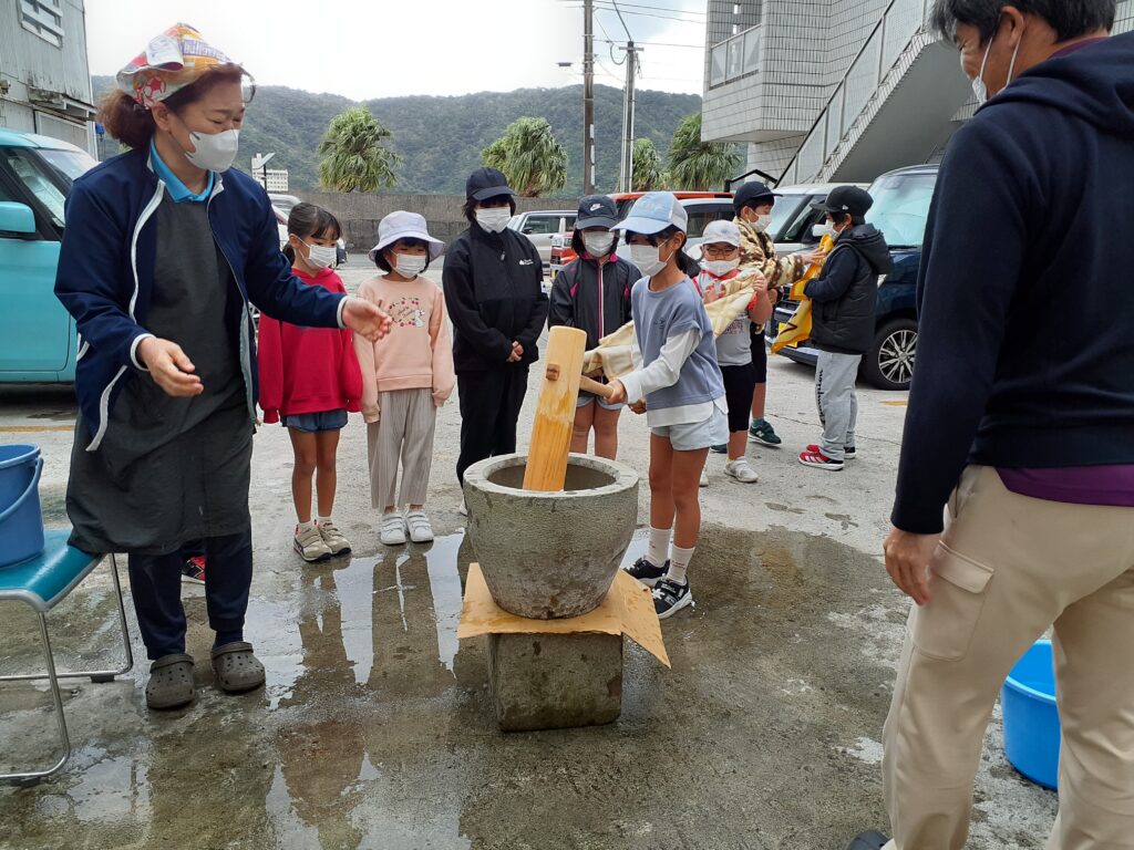 今年は、利用者さまのご家族、担当ケアマネージャーさん、地域の「あおぞら児童クラブ」さんにも声を掛けさせて頂き、25日(木)はあまみFMさんがサンタさんの恰好でもちつきの取材に来て下さるなど、にぎやかな「もちつき大会」となりました。